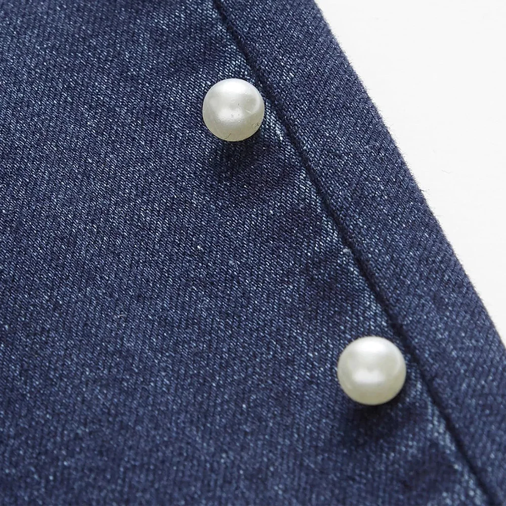 Images of Plus Size Women Denim Pants Ladies Pearls Beads Mid Waist Skinny Stretch Pencil Pants Autumn Vintage Pocket Pearls Jeans 5XL D25 :